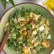 2. En una fuente colocar rúcula, las verduras y garbanzos asados, y agregar el resto de ingredientes.